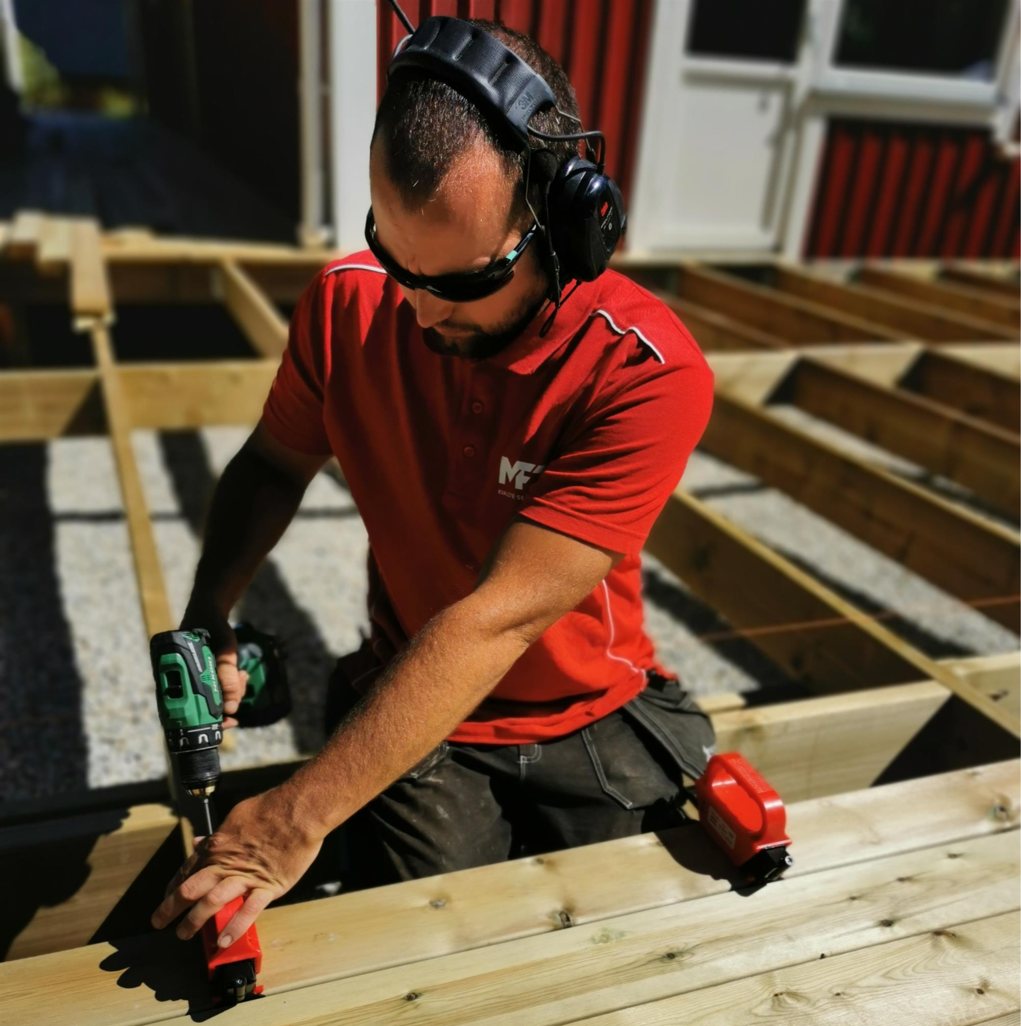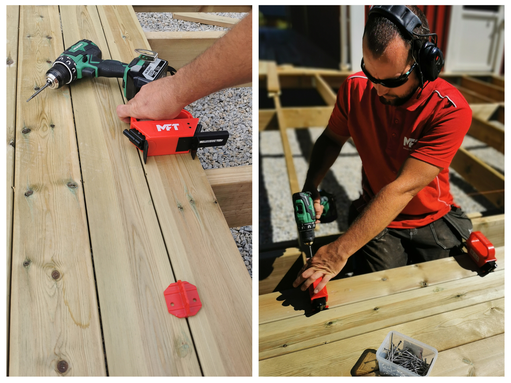 Med et verktøy for å skjult montering av terrasseskruene bygger du din nye terrasse raskt og enkelt - med et perfekt resultat uten irriterende fliser, sprekker eller skruehull. Verktøyet er tilpasset terrassebord med bredde 110-155 mm. Med monteringsverktøyet følger det med spesialbits og en distanse- mal slik at du enkelt får riktig avstand mellom terrassebordene.